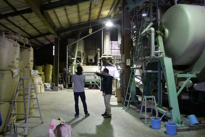 Katsuhisa-san – Chez Yamahisa, nous sommes garant des méthodes traditionnelles japonaises, mais nous ne nous interdisons pas l’innovation ! Après quatre ans de R&D en laboratoire, j’ai découvert qu’une bactérie de la fleur de l’olivier pouvait servir à la fabrication d’une levure type Koji pour la fermentation de la sauce soja. J’ai alors développé une nouvelle sauce soja de fleur d’olivier que j’ai appelé “Hanabishio” de Hana : fleur, et bishio qui vient de Hishio : un mot ancien pour désigner la sauce soja. Cette levure d’olivier peut aussi être utilisée pour la fabrication du miso ou même du pain. Nous avons testé ce dernier avec la boulangerie Asuki dans le village, une réussite !
