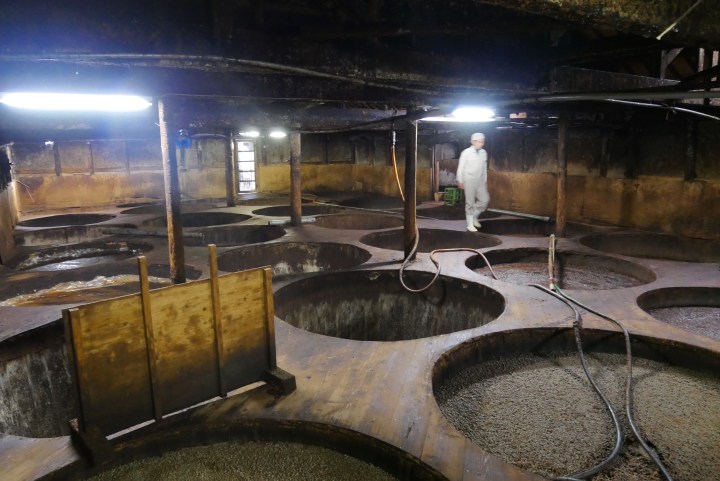 Katsuhisa-san – Shōdoshima is historically an areo of sea salt production, that’s why the soy sauce industry in Japan settled here at the end of the nineteenth century. Shōyu, in Japanese, is made of 4 ingredients : steamed soybeans, roasted wheat, salted water and a yeast for fermentation, called Koji. In my family, we make soy sauce for 80 years, with craft processes aiming at a high quality product. We select each ingredient carefully, totally organic, and we follow each traditional step, in particular the 18 month Moromi maturation in Suji tanks – the Japanese cedar – and the filtering by fabrics folded in three