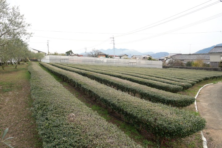 Katsuhisa-san – Pour moi le thé est du thé, pas une tisane. Les méthodes de productions sont complexes, mais elles contribuent à lui conférer une couleur et des arômes prononcés et variés. J’ai donc décidé de traiter les oliviers et leurs feuilles comme on traite les plants de thé et leurs feuilles pour en faire du thé Sensha, grand thé japonais. En 2008, nous avons acheté plusieurs machines à thé, pour la cuisson des feuilles, le refroidissement, le roulage et le séchage. Nous récoltons les nouvelles feuilles d’olivier en mai, juillet et septembre et nous produisons chaque année 900 kg de véritable thé d’olivier. Goûtez donc !