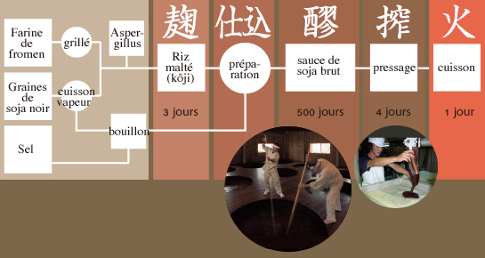 Nous sélectionnons des ingrédients biologiques, puis nous respectons toutes les étapes, de la cuisson maitrisée à la filtration par tissus pliés en trois, en passant par la maturation du Moromi pendant 18 mois en cuve de Suji, le fameux cèdre du Japon.