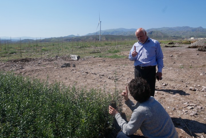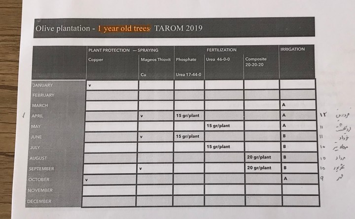 H.S. – C’est effectivement beaucoup de travail, mais avant tout beaucoup d’organisation et de planification. Nous sommes aidés pour cela par une équipe de 4 consultants grecs, qui ont davantage d’expérience que nous. Les 150 hectares ont été divisés en plusieurs parcelles, que nous plantons progressivement. Les plus anciennes l’ont été il y a trois ans, quand d’autres sont encore à nu. Tous les plants proviennent de pépinières iraniennes, principalement à Bandar Abbas, situé à l’autre bout du pays sur le Golfe d’Oman, ce qui nécessite aussi un peu d’organisation. Enfin nous prévoyons de construire dès l’année prochaine la fabrique qui accueillera le moulin et les chambres de stockage. Pas plus tard, car les arbres des premières parcelles ont déjà donné leurs premiers fruits à l’automne dernier : environ une tonne que nous avons récoltée avec joie, et pressée dans un moulin de Rudbar.