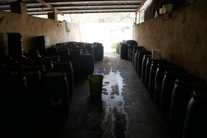Venez voir dans l’arrière boutique. C’est dans ces grands barils de plastique que nous stockons l’huile fraiche. Regardez cette couleur ! Vous voulez goûter ?
