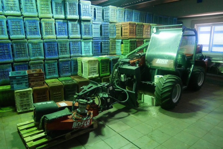 Tout d’abord, en amont de la fabrication, pour la récolte des olives, exit les peignes électriques ou – pire – les bâtons. Monsieur Joseph a investi dans un tracteur Bosco à 80 000€ pour secouer le tronc des oliviers et en faire tomber les olives : il peut ainsi récolter 6 à 8 tonnes d’olives par jour et réduire la main d’œuvre nécessaire de deux tiers.