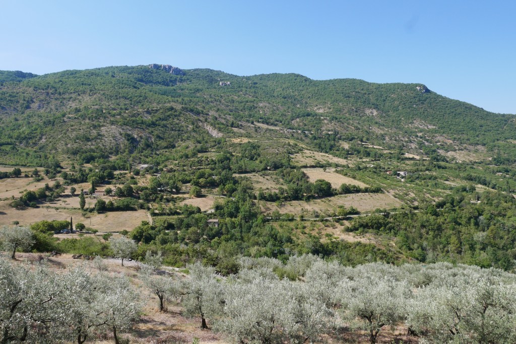 Quand on arrive sur les terres de la ferme le Théron, tous les sens sont mis à contribution. La vue, bien sûr, avec un panorama époustouflant sur les Baronnies provençales, mais aussi le nez avec l’odeur si caractéristique du maquis, de ses pins et de ses figuiers. Sans oublier l’ouïe, car ici les cloches des chèvres tintent agréablement tandis que les chiens aboient pour les ramener à l’abri lorsque la nuit tombe et que la lune s’éclaire au dessus des barres rocheuses qui surplombent la chèvrerie.