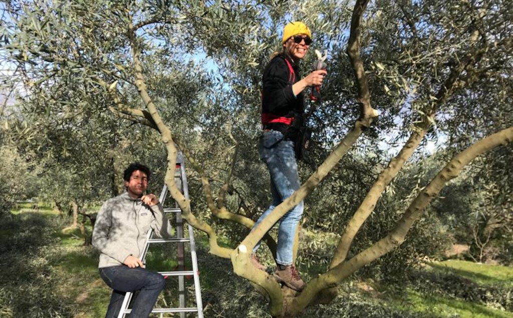 Début mars 2020, nous procédons à notre première taille, assez drastique, des oliviers, pour les structurer pour les années à venir. Et nous épandons 10 m3 de fumier aux pieds des arbres. Chaque étape est un moment de bonheur et d’apprentissage !