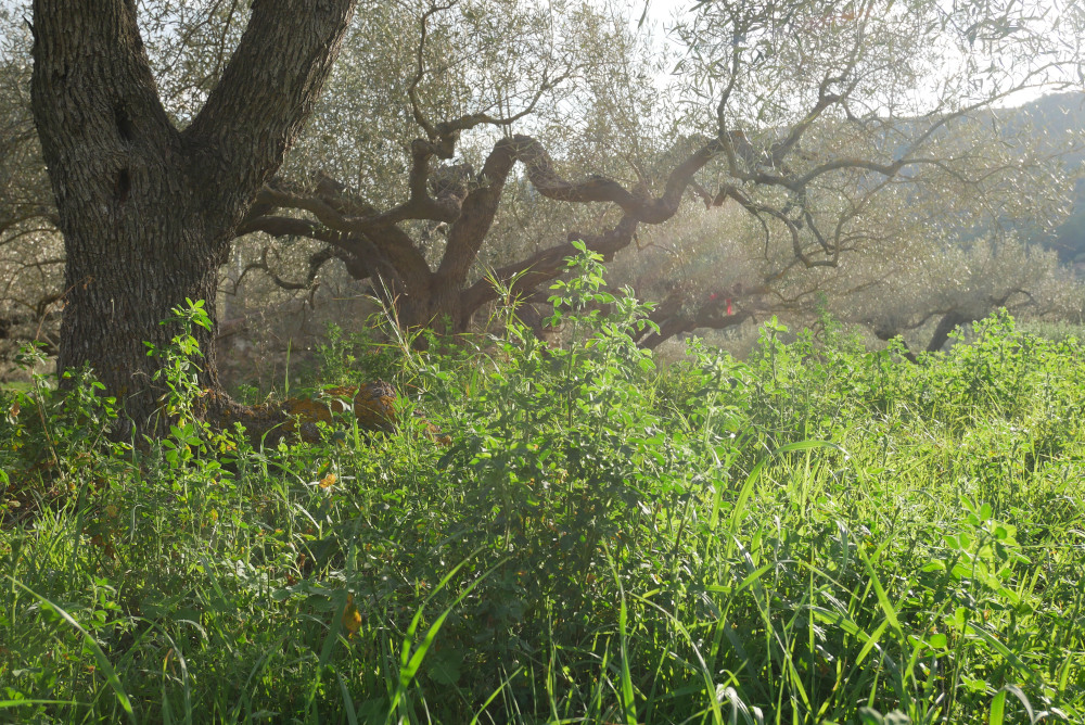 Depuis 2007 donc, Cécile et Eric cultivent leur oliveraie de façon biologique. Dès 2010, ils plantent de la moutarde, de la luzerne et de la vesce aux pieds des oliviers pour recréer une couverture végétale du sol et ainsi permettre une bonne infiltration du peu d’eau de pluie que reçoit cette région. Ces herbes, une fois coupées, servent aussi de nutriments pour le sol, avec le broyat des branches de la taille et un apport de fumier en paillettes. Pas d’engrais minéral bien sûr, car les plantes servent aussi à fixer l’azote et à le rendre assimilable par les oliviers. Et Cécile observe même un net recul de la présence de mouches de l’olive avec ces herbes auxiliaires. Cette démarche ultra-bio ne sera reconnue par la certification officielle espagnole BIO qu’à partir de 2020.
