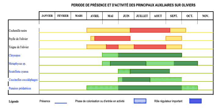 Les guêpes Metaphycus Lounsburyi et Metaphycus Helvolus, de toutes petites guêpes originaires d’Afrique de couleur brune ou orange. Si l’idéal est de les attirer naturellement, en cas d’invasion de cochenille, pour agir vite, il est possible d’acheter des tubes (un pour 20 oliviers) à suspendre au printemps dans les oliviers, à l’ombre de la frondaison, pour un lâcher massif.