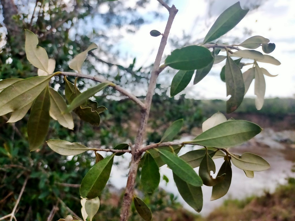 À regarder ses rameaux, pas de doute en tout cas, l’olivier africain est bien un proche parent de nos oliviers européens : on retrouve la même forme allongée caractéristique des feuilles, qui poussent ici aussi par paires opposées. Mais, n’étant pas cultivé, l’olivier affiche ici une silhouette bien plus élancée et haute qu’en Europe : certains individus que nous avons croisés montent ainsi à près de 15 mètres de hauteur. Enfin, à l’instar des oliviers sauvages qu’on peut aussi rencontrer en Corse par exemple, l’olivier africain produit de tout petites olives, dont le noyau représente la quasi-totalité du fruit (avec très peu de pulpe donc).