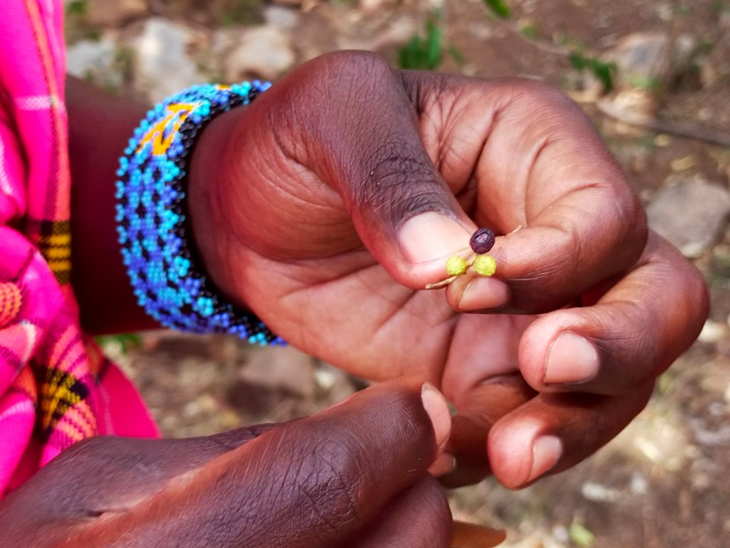 Si l’olivier fait l’objet d’une telle surveillance et de restrictions, c’est non seulement qu’il est sacré mais aussi qu’il se fait rare. Il est en effet très difficile dans ces contrées de faire pousser un olivier à partir d’un noyau d’olive ou d’une bouture, et il faut donc compter sur le lent et patient travail de la nature pour voir les arbres essaimer à droite à gauche. Heureusement, comme son cousin méditerranéen, l’olivier africain se révèle « immortel » et les arbres coupés à ras pour les cérémonies ou la manufacture finissent toujours par repartir en de vaillants rejets. Une propriété miraculeuse qui place l’olivier au cœur de plusieurs adages en langue Maa pour remercier, souhaiter la bienvenue ou une longue vie à son prochain…